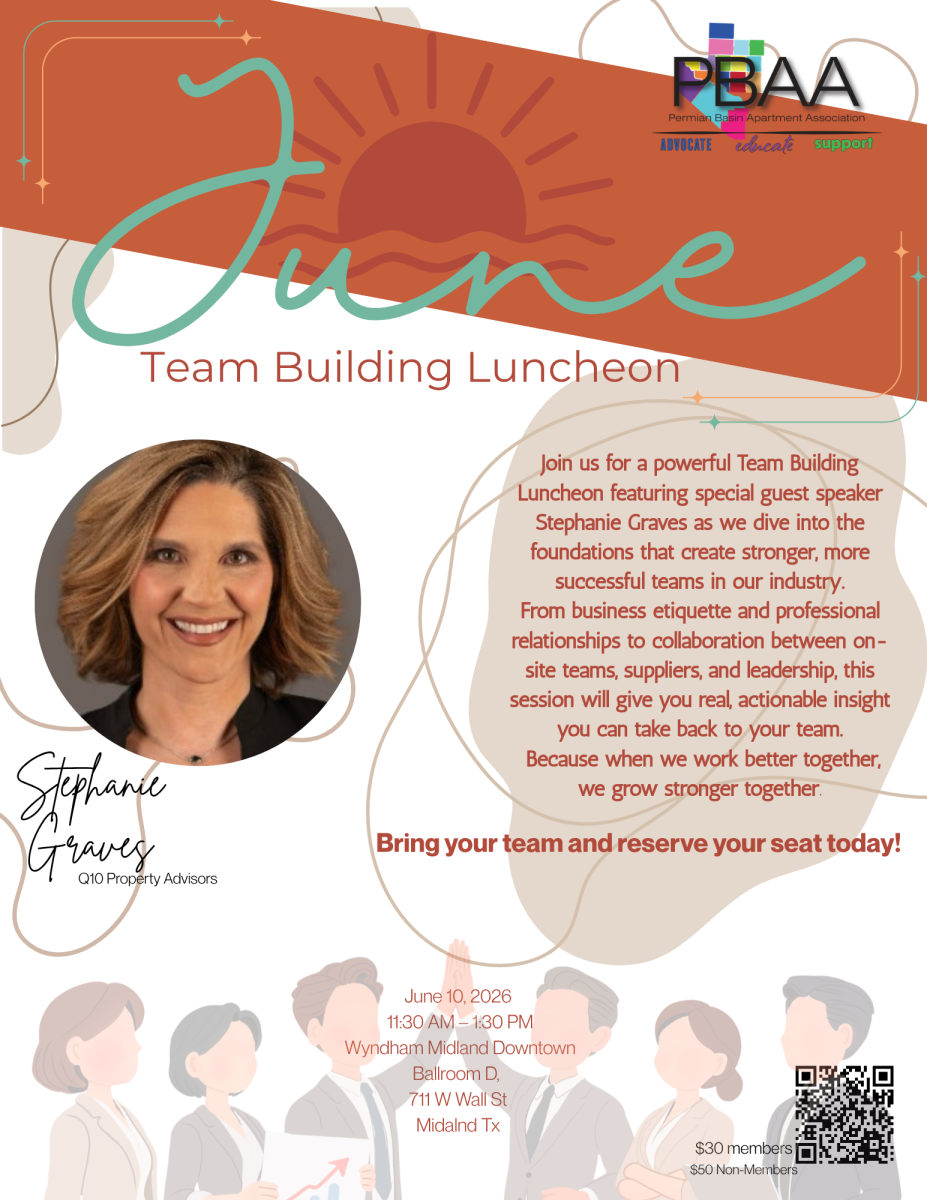 Join us for a powerful Team Building Luncheon featuring special guest speaker Stephanie Graves as we dive into the foundations that create stronger, more successful teams in our industry.