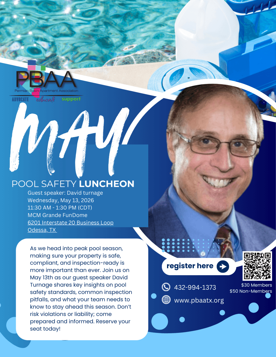 As we head into peak pool season, making sure your property is safe, compliant, and inspection-ready is more important than ever. Join us on May 13th as our guest speaker David Turnage shares key insights on pool safety standards, common inspection pitfalls, and what your team needs to know to stay ahead this season. Don’t risk violations or liability; come prepared and informed. Reserve your seat today!